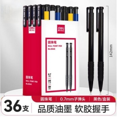 得力圆珠笔中油笔 0.7mm子弹头软胶握手原子笔按动笔 办公用品 黑色 36支/盒