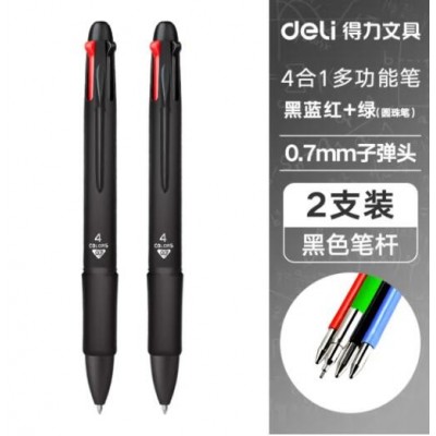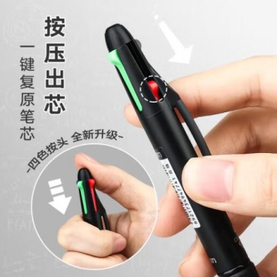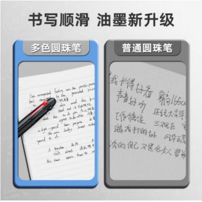 多色圆珠笔四色油笔彩色原子笔蓝色多功能做笔记专用黑蓝红色油性按压式四合一多颜色一体笔中油笔中性笔